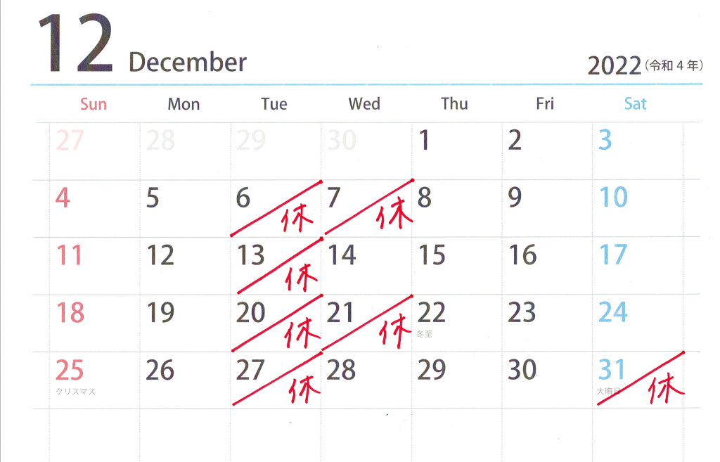 🍀12月の定休日🍀