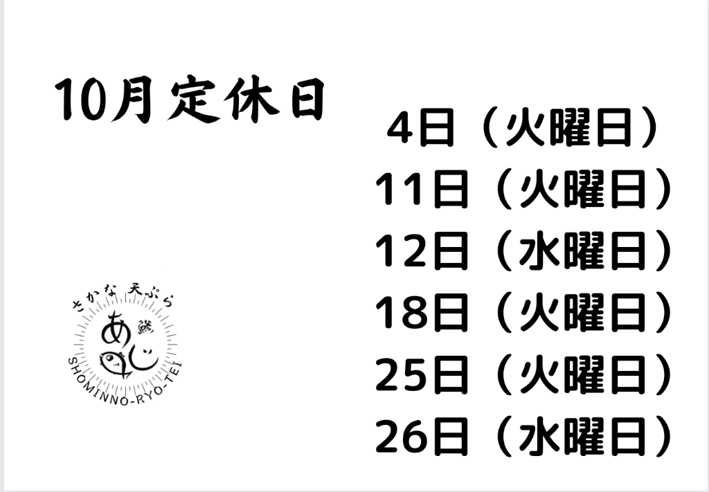 🌕10月の定休日のお知らせ🌕