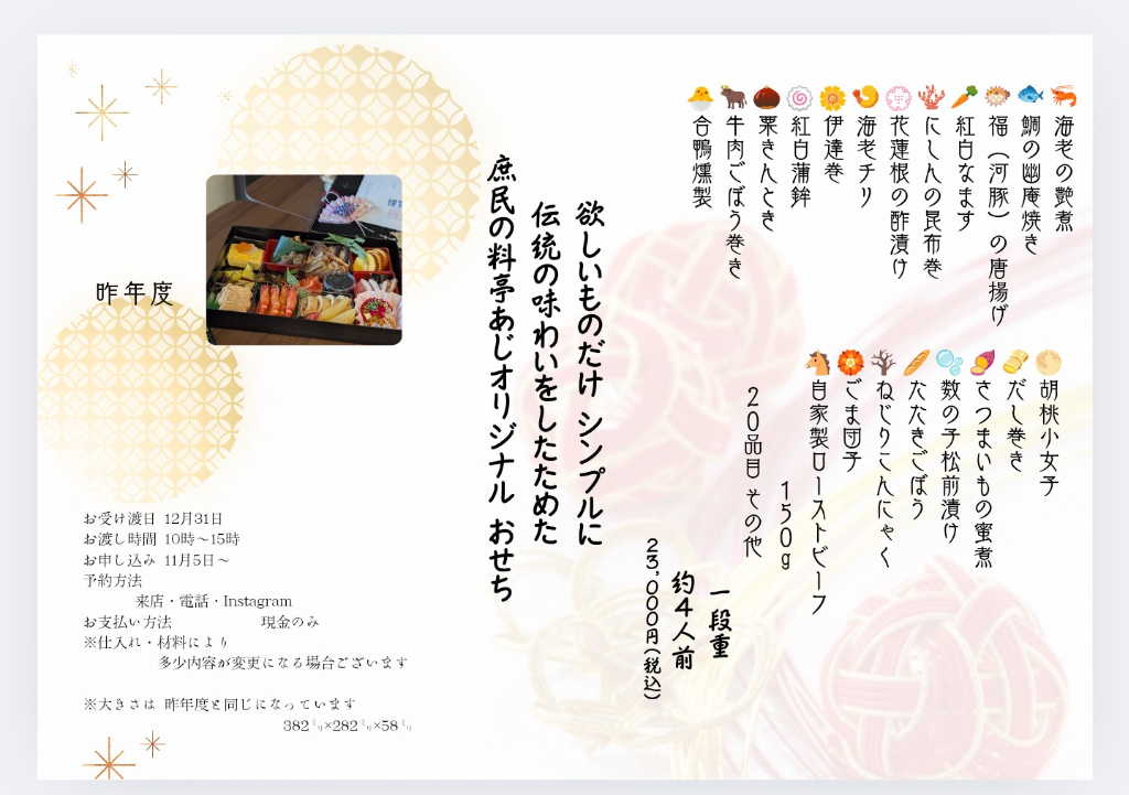 ✨おせちのご案内です✨