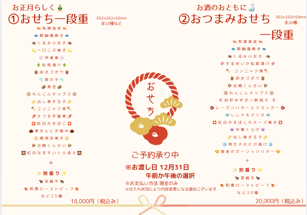 今年も お正月のおせち ご注文を開始いたします✨✨