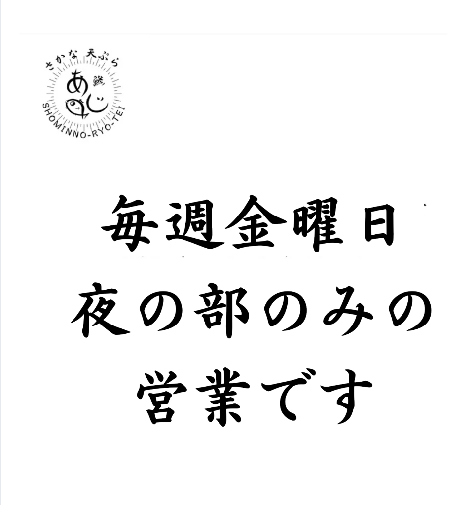 ◎毎週金曜日 夜の部のみの営業