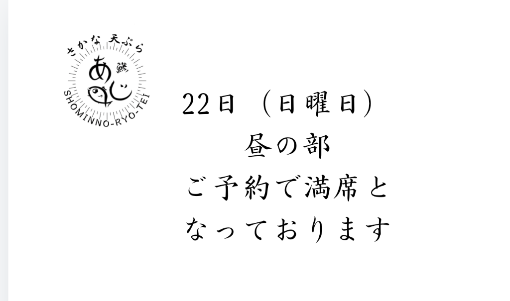 本日昼の部満席となっております