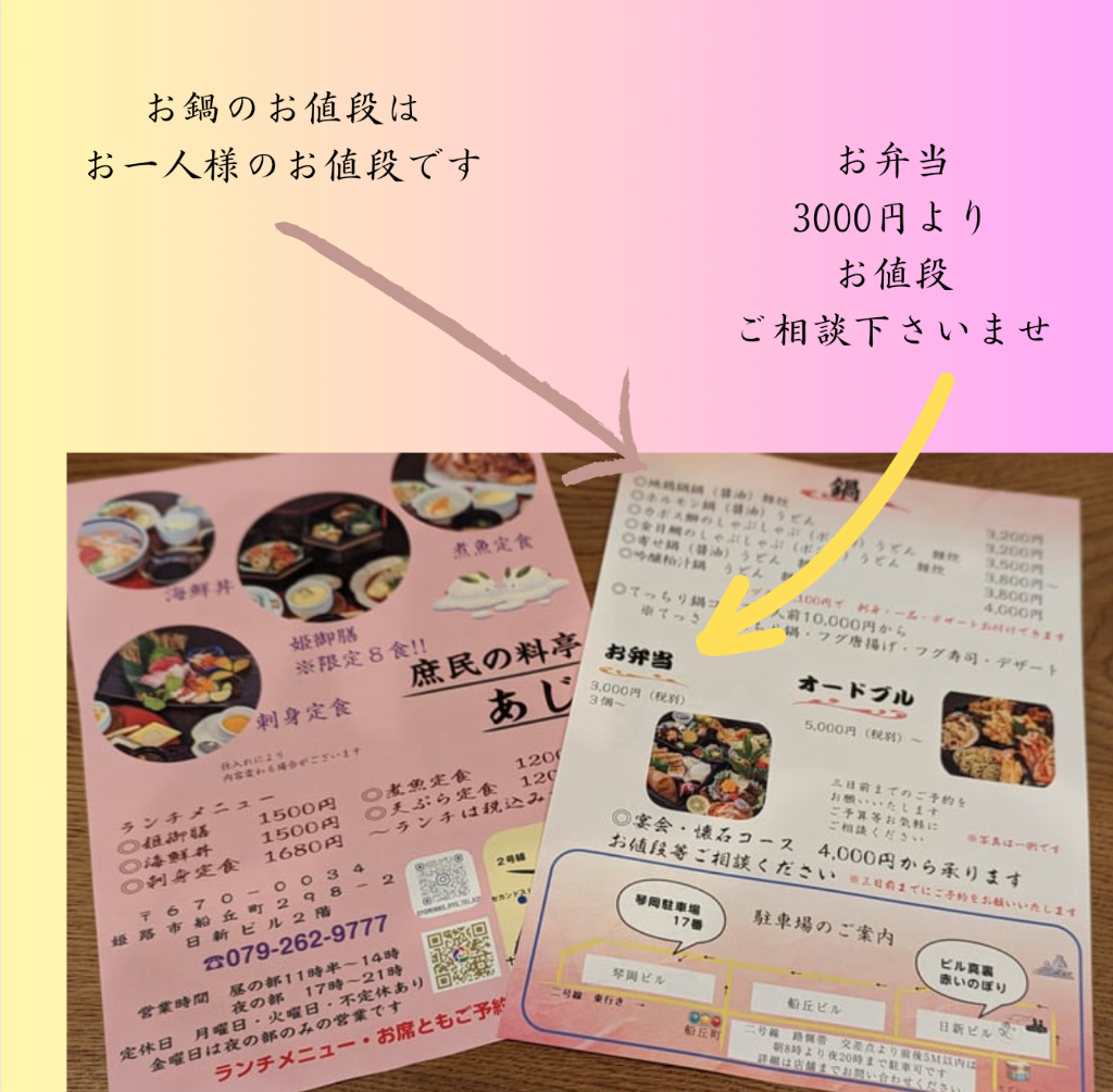 #姫路グルメ#姫路ランチ#庶民の料亭あじ#チラシのご案内