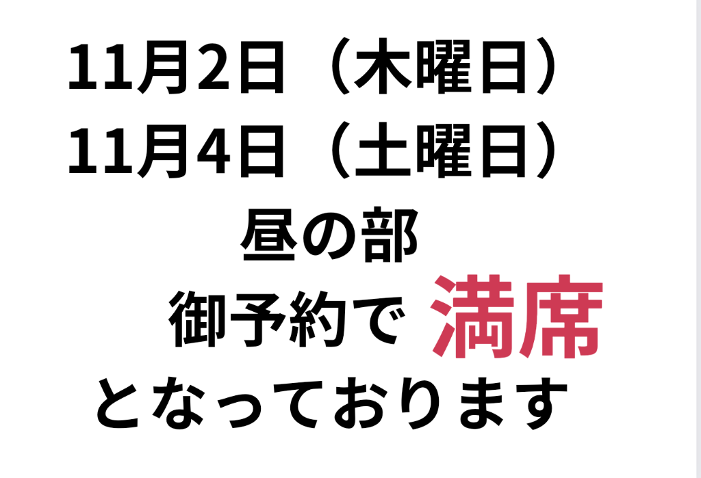 #姫路ランチ#姫路グルメ#庶民の料亭あじ#満席のご案内#11月2日#11月4日