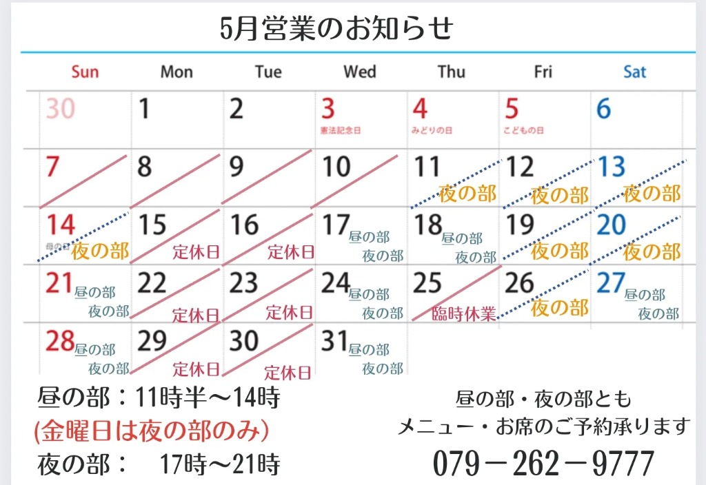 昼の部の再開はカレンダーご確認お願いいたします。