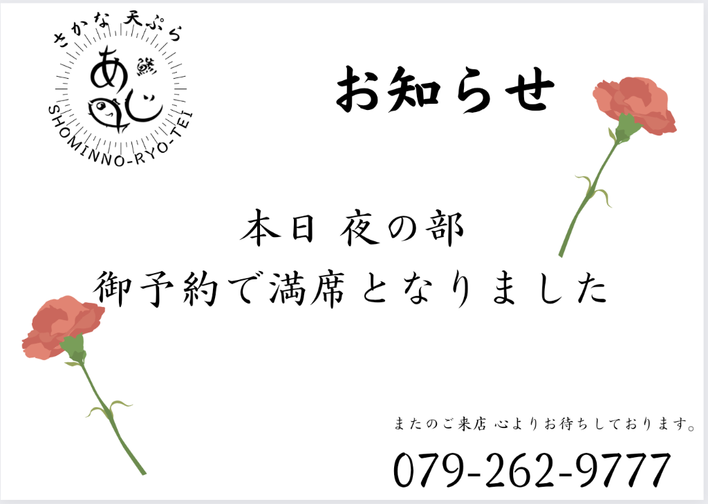満席のお知らせ
