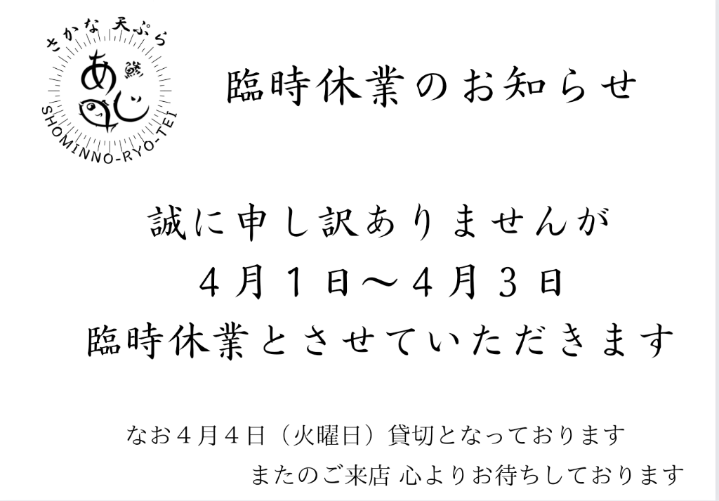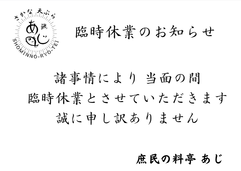 臨時休業のお知らせ