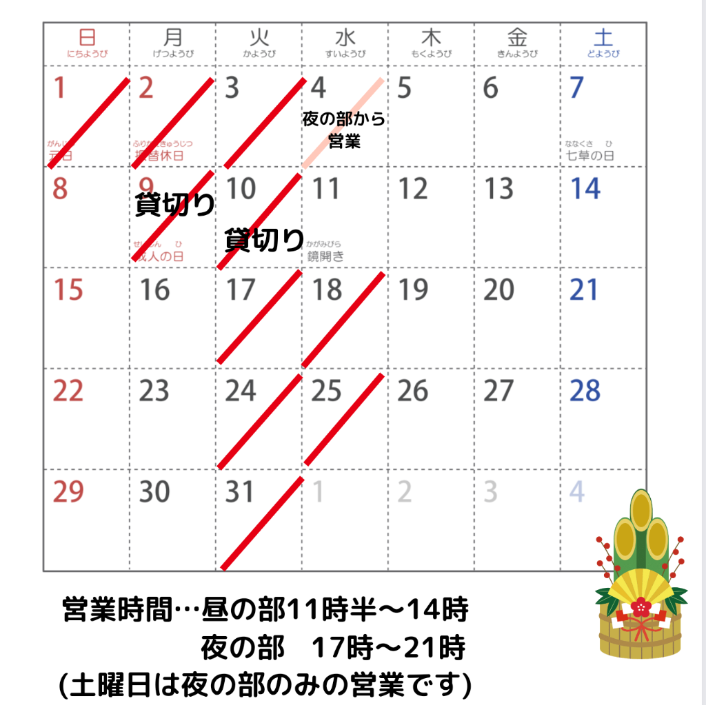🎍1月の定休日のご案内🎍