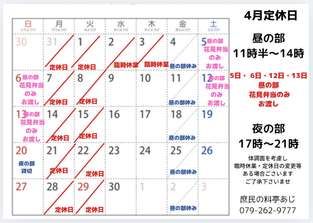 ◎4月5日(土曜日)※4月4日(金曜日)締切